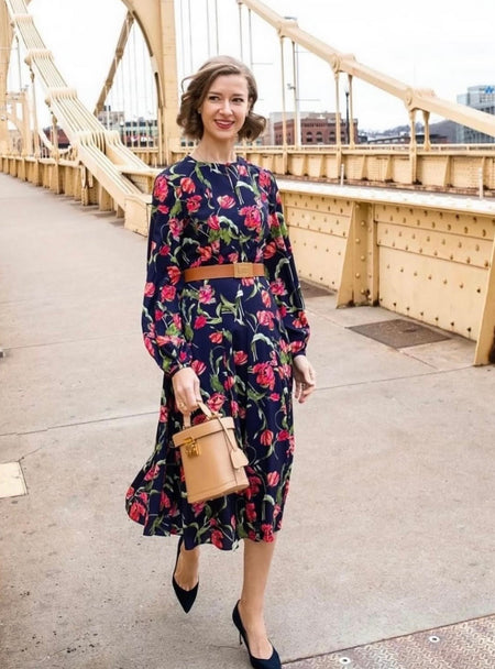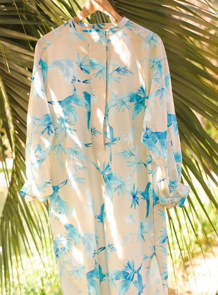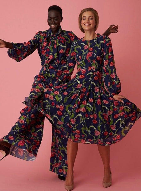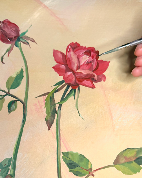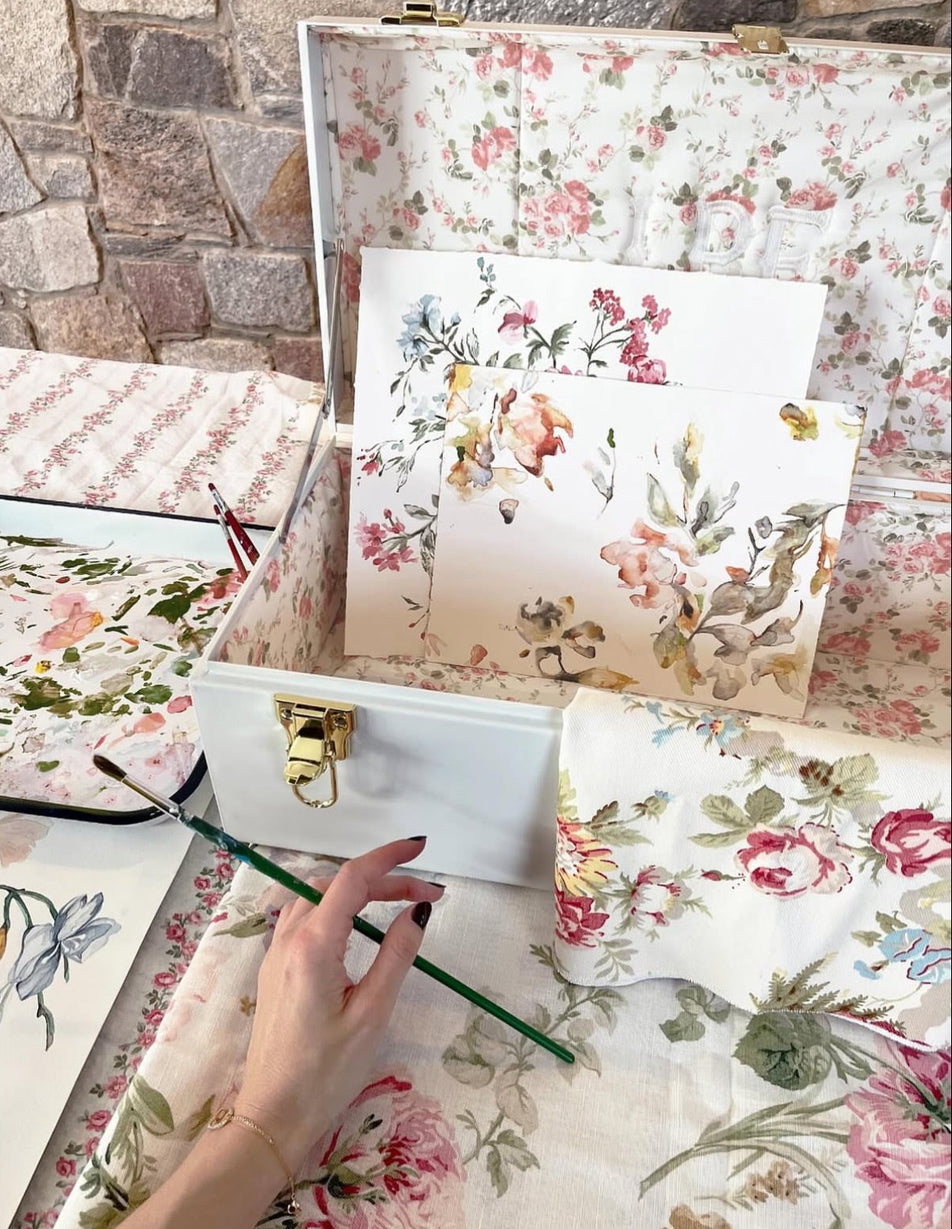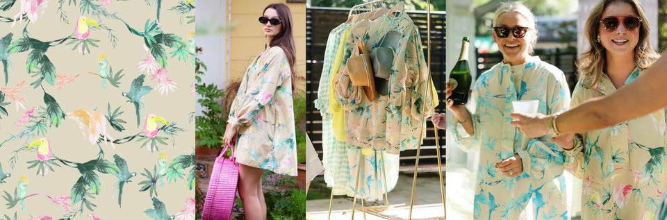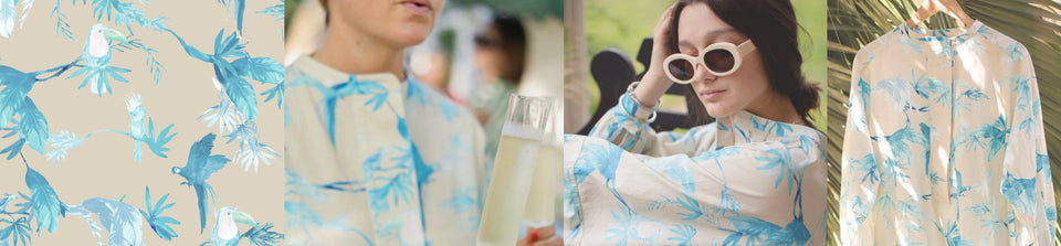 As a textile designer her background in fine arts shapes her process. Many of her designs begin as hand-painted artworks before evolving into wearable designs.
